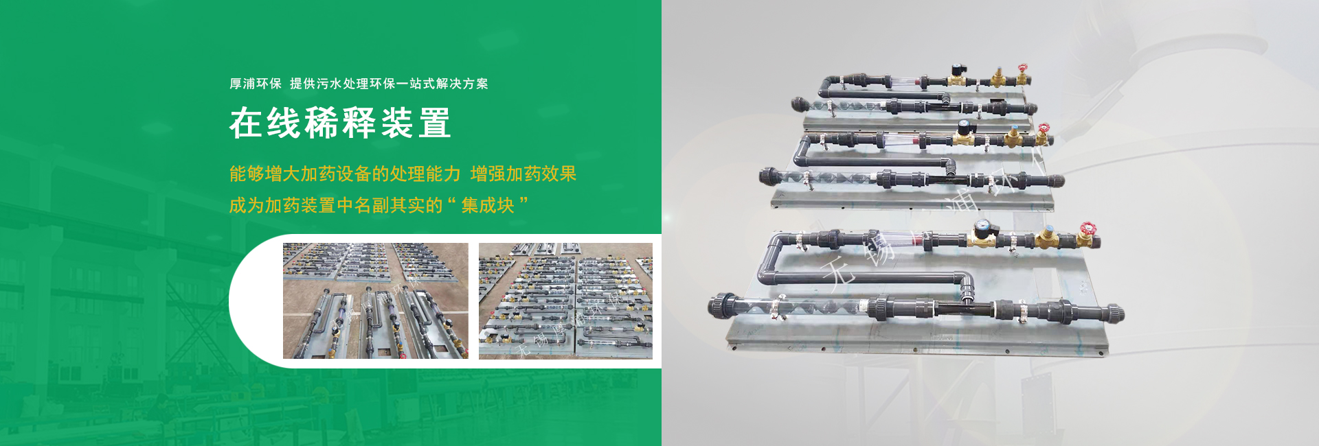在線稀釋裝置產(chǎn)品特點(diǎn):1、在線稀釋裝置包括減壓閥、壓力表、手動(dòng)調(diào)節(jié)閥、電磁閥、流量計(jì)、單向閥、射流器、管道混合器、背板。2、電磁閥與加藥自控系統(tǒng)連動(dòng),實(shí)現(xiàn)在線稀釋自動(dòng)控制。3、專用混合器一般為SUS3...